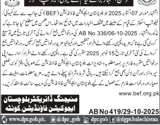 Admissions for 33rd Entry for the Academic Year 2026 are