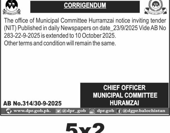 Interview Notice – New Trauma Center, Sandeman Provincial Hospital Quetta