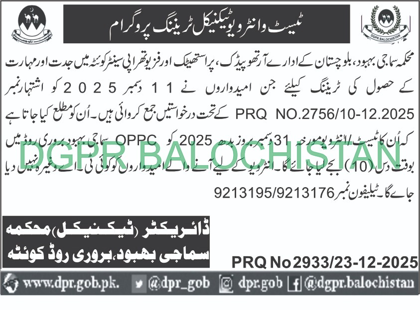 Adv-JobsTest and Interview Notification – Department of Social Welfare, BalochistanDecember 24, 2025December 24, 2025Comments (0)Shams Ur Rehman Anas Hussain