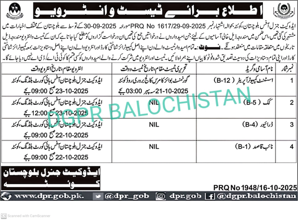 Test and Interview Schedule Announced – Balochistan High Court Vacancies