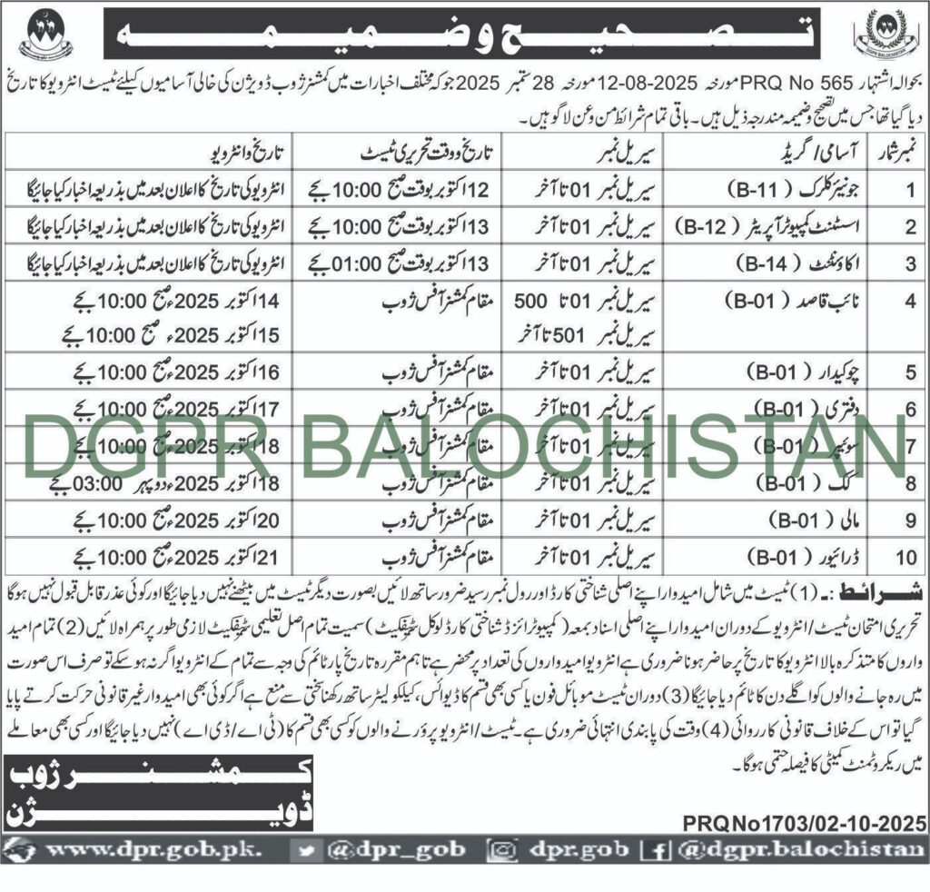 Test & Interview Notice: Health Department Zhob Releases Recruitment Schedule