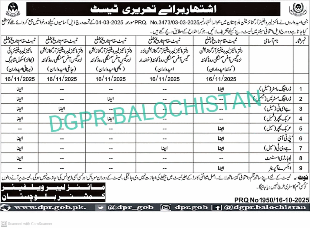 Test Schedule Announced – Mines Labour Welfare Organization Balochistan