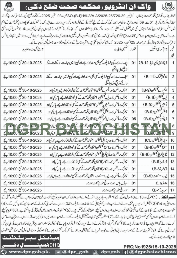 Walk-in Interview Notice – Vacant Positions at District Headquarters Hospital, Duki Health Department